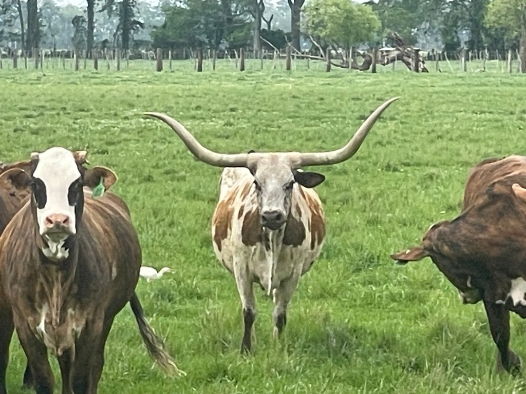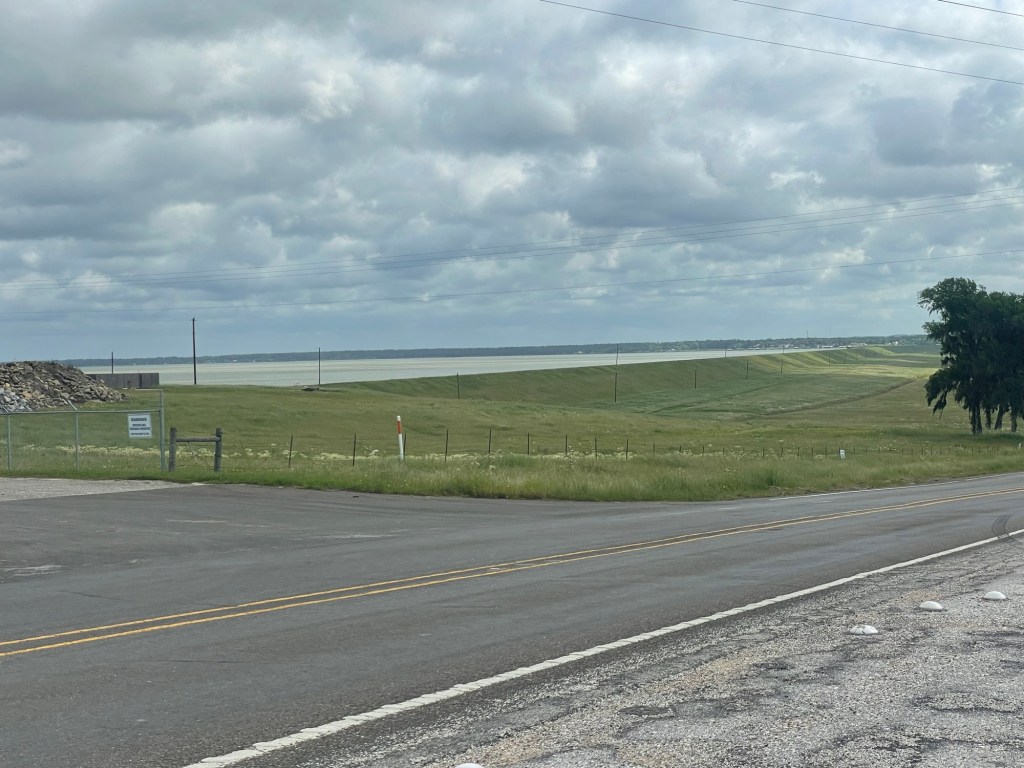 Before we left in the morning…This massive oak is over 200 years old! Beautiful!I tried to get a photo on a longhorn steer in Texas. Finally succeeded in Louisiana About to cross over the Atchafalaya River. There was a lot of farming on the levees by the big rivers like this. The river is on the other side. Craigs malfunctioning sleeping pad. Looks like a pillow but it’s difficult to keep your head on it. We booked a hotel room before finding a replacement pad at the local Walmart. We crossed the Morganza Control Structure and Floodway here. A system of levees and spillways created in 1957 to control the Mississippi floods.