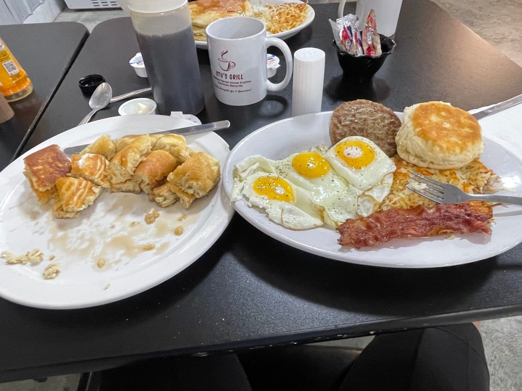 We decided to leave our comfortable little cabin early and head over to the local restaurant for breakfast before setting off. It was delicious and got us off to a good start.