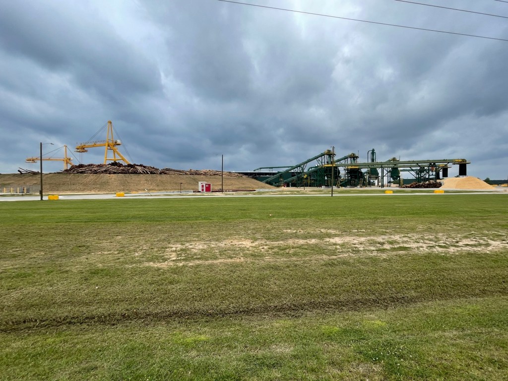 There were a lot of logging trucks that passed us and also a lot of bark and stuff on the shoulder. At one point we finally came upon a wood mulch plant that explained all of the truck traffic.
