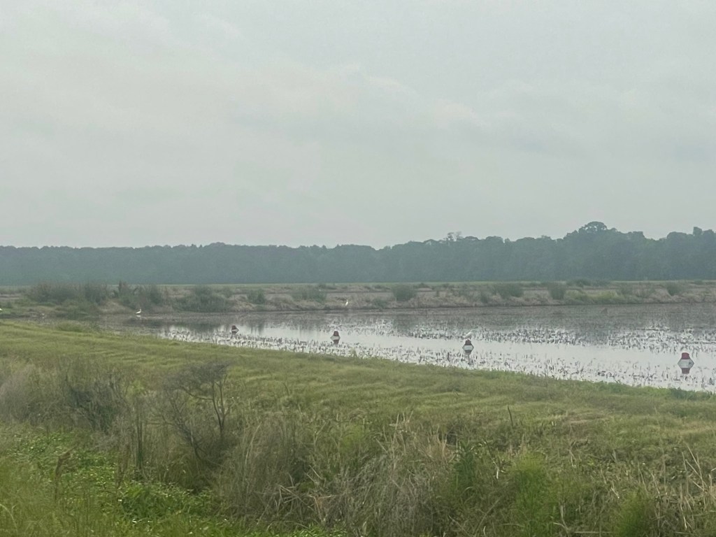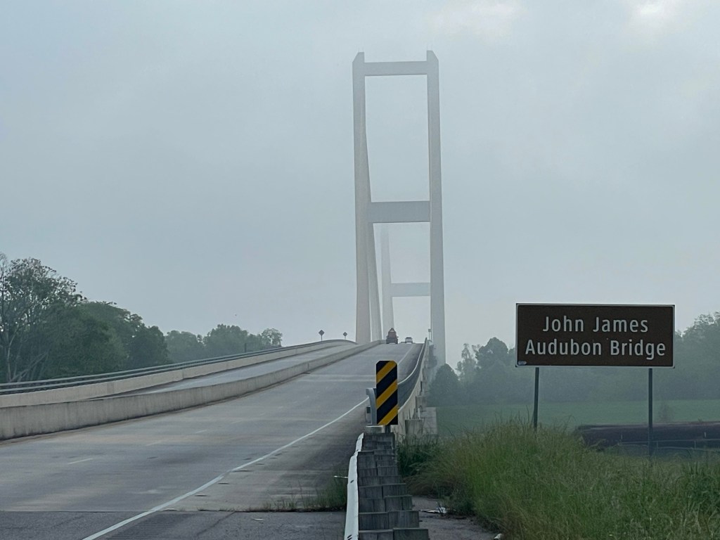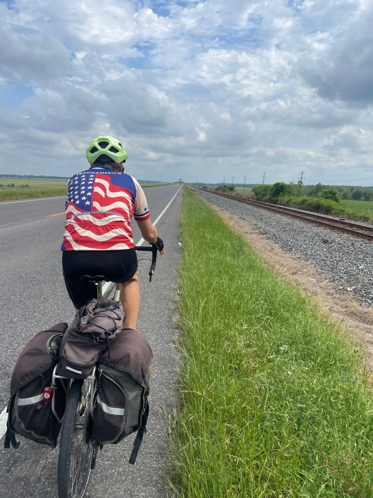 It was humid and cloudy again. Fortunately not sunny so it wasn’t too hot. We have found that the Louisiana side roads with little traffic often are poorly maintained with grass growing between the cracks in the middle of the lane. we were also on State road 1 several times today and the shoulder was also really poor. 9 miles of misery!