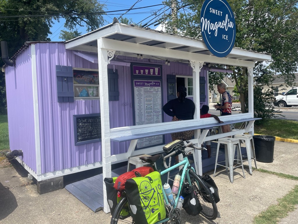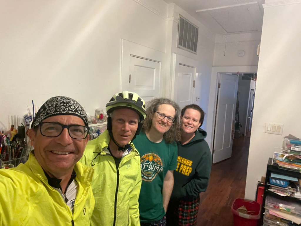 We couldn’t find any campsites that would work along the route so I booked a holiday inn offroute with my points. We have a warmshowers reservation for tomorrow and Sunday in downtown New Orleans so we can spend a day sightseeing.