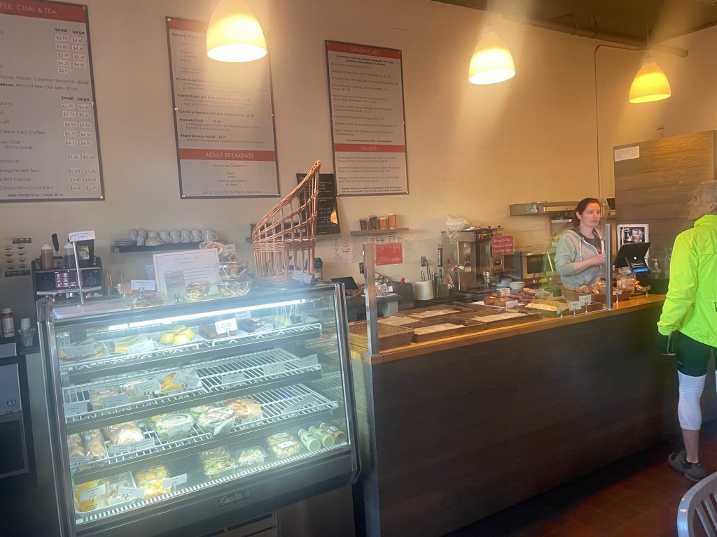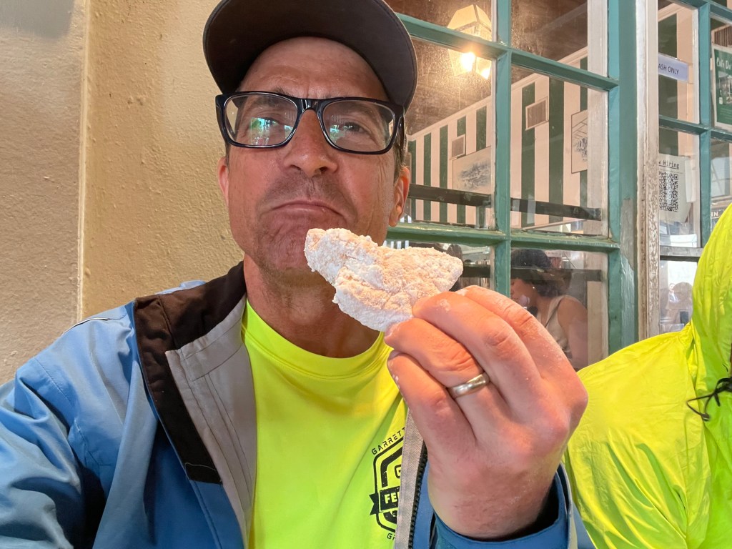 Our warmshowers hosts house. They both do art therapy so had tons of supplies in the house. Bagel oven where we had breakfast Enjoying my beignets. They are delicious but they get powdered sugar everywhere!The catholic church. They were holding mass at the time.Riding the streetcar