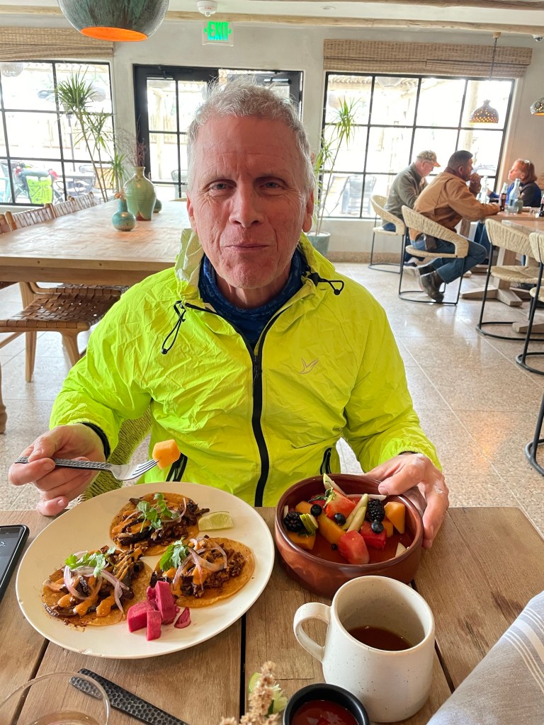 Started out from our boulder oaks campground with a fellow cyclist, John, who we met yesterday. Tough climbing with a strong headwind all morning wore us out pretty good. It was also in the low 40s all morning. So we decided to call it a day after about 40 miles. However, we had a great 10 mile descent with a tailwind that caused us to miss our campground. We didn’t want to ride back 4 miles into the wind so we kept going another 30 miles to a hotel in Calexico making it just before dark. 70 miles